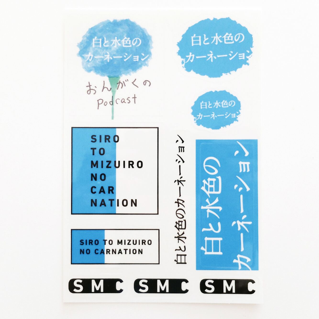 ロゴステッカー(白と水色のカーネーション)ロゴ7種 | 白と水色のカーネーションストア